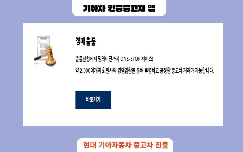 글로벌기업 현대기아차가 2023년10월 말부터 중고차 시장에 본격적으로 진출하였습니다. 현대/제네시스 인증 중고차는 5년이내, 주행거리 10만 km이내 무사고 차량으로 한정하여 판매하고 있습니다.