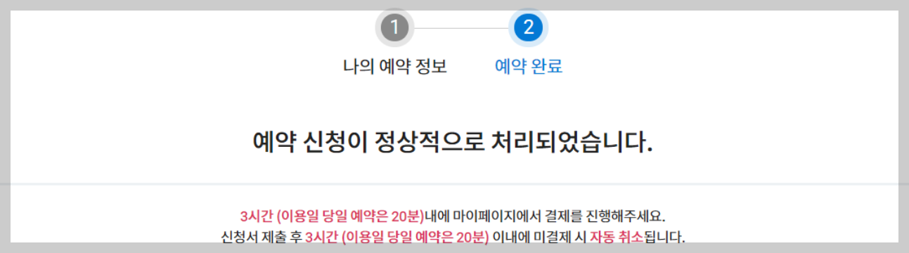 STEP 06. 예약이 완료되었습니다.유료 서비스의 경우 추후 결제 완료 시 예약이 완료됩니다.