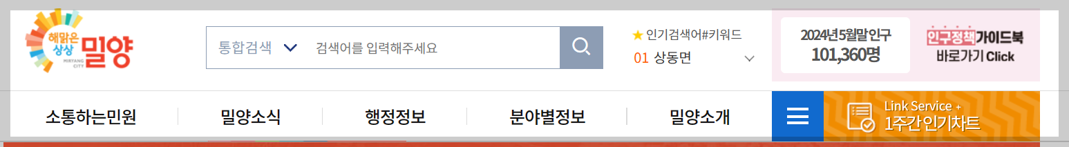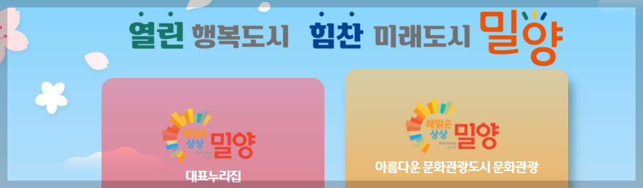 밀양시청홈페이지이동은 다음이나 구글 네이버에서 밀양시청을 검색하여 홈페이지에 접속하시거나 위 밀양시청 홈페이지 바로가기 링크를 통해 밀양시청 홈페이지에 접속할 수 있습니다. 본인이 간편한 방법을 선택하여 접속하시기 바랍니다.
