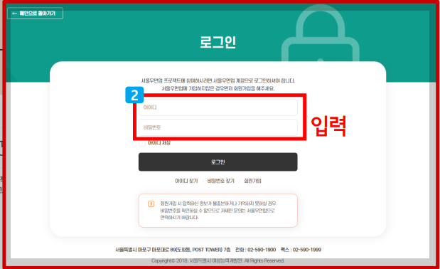1. 서울우먼업 홈페이지에 접속합니다.