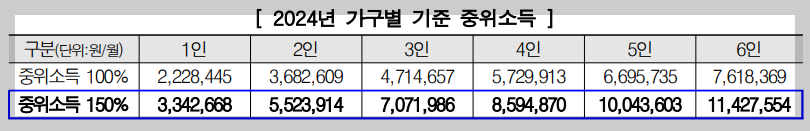 ■ 소득요건 : 가구소득 기준 중위소득 150% 이하