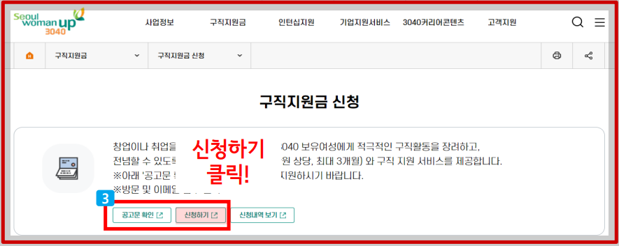 ▣ 서울우먼업 구직지원금 신청하기