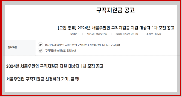 2. 서울우먼업구직지원금 공고를 확인합니다.