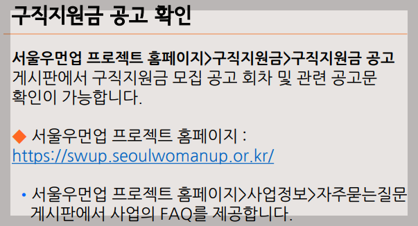 ▣ 서울우먼업 구직지원금 유의사항