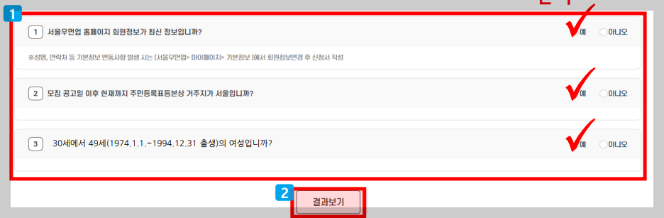 ㅇ 서울시 우먼업 구직지원금 사업은 제출한 신청서에 따라 자격을 조회하고 심사하므로, 기입한 정보가 부정확하거나 확인이 불가한 경우 불이익을 받을 수 있으니 정확히 기입하여 주시기 바랍니다.