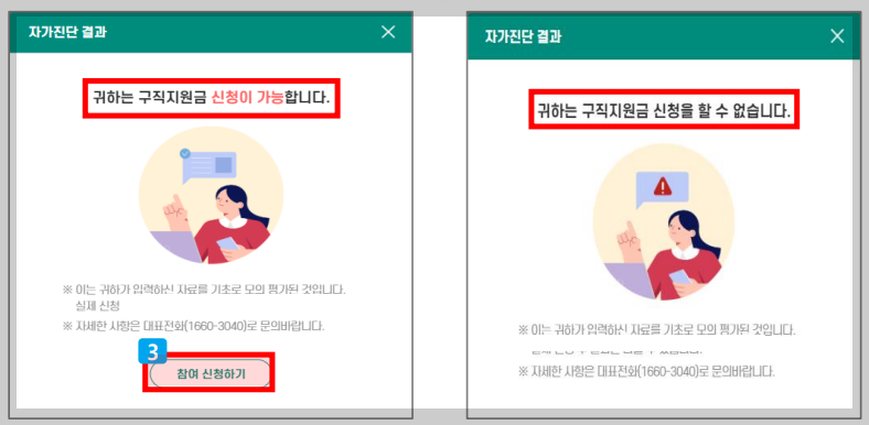 5. 자가진단으로 신청자격여부를 확인합니다.